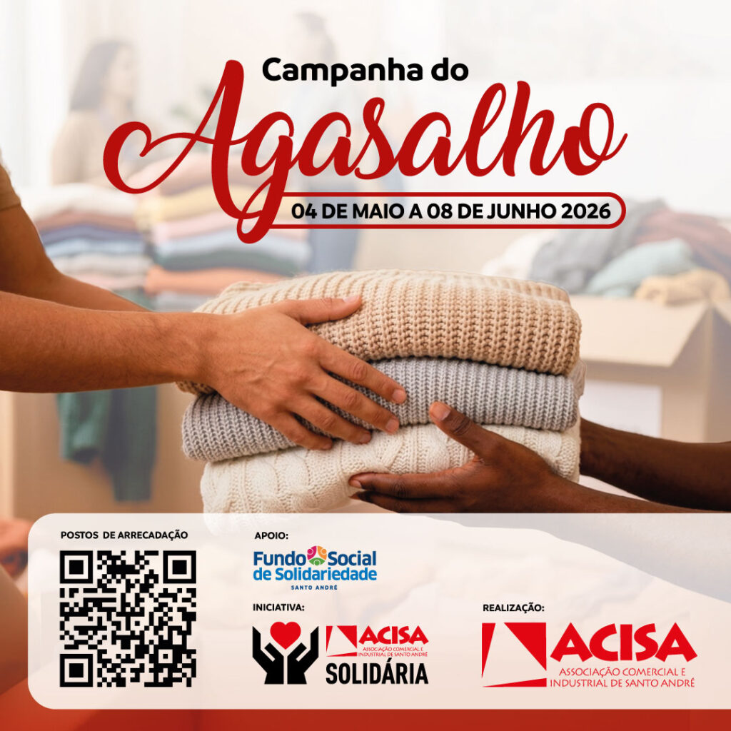 Comprometida com a comunidade onde está inserida e no bem-estar das pessoas que vivem em situação de vulnerabilidade social, a Associação Comercial e Industrial de Santo André – ACISA promoverá, no período de 4 de maio a 6 de junho, mais uma edição da tradicional Campanha do Agasalho, realizada por meio da ACISA Solidária.